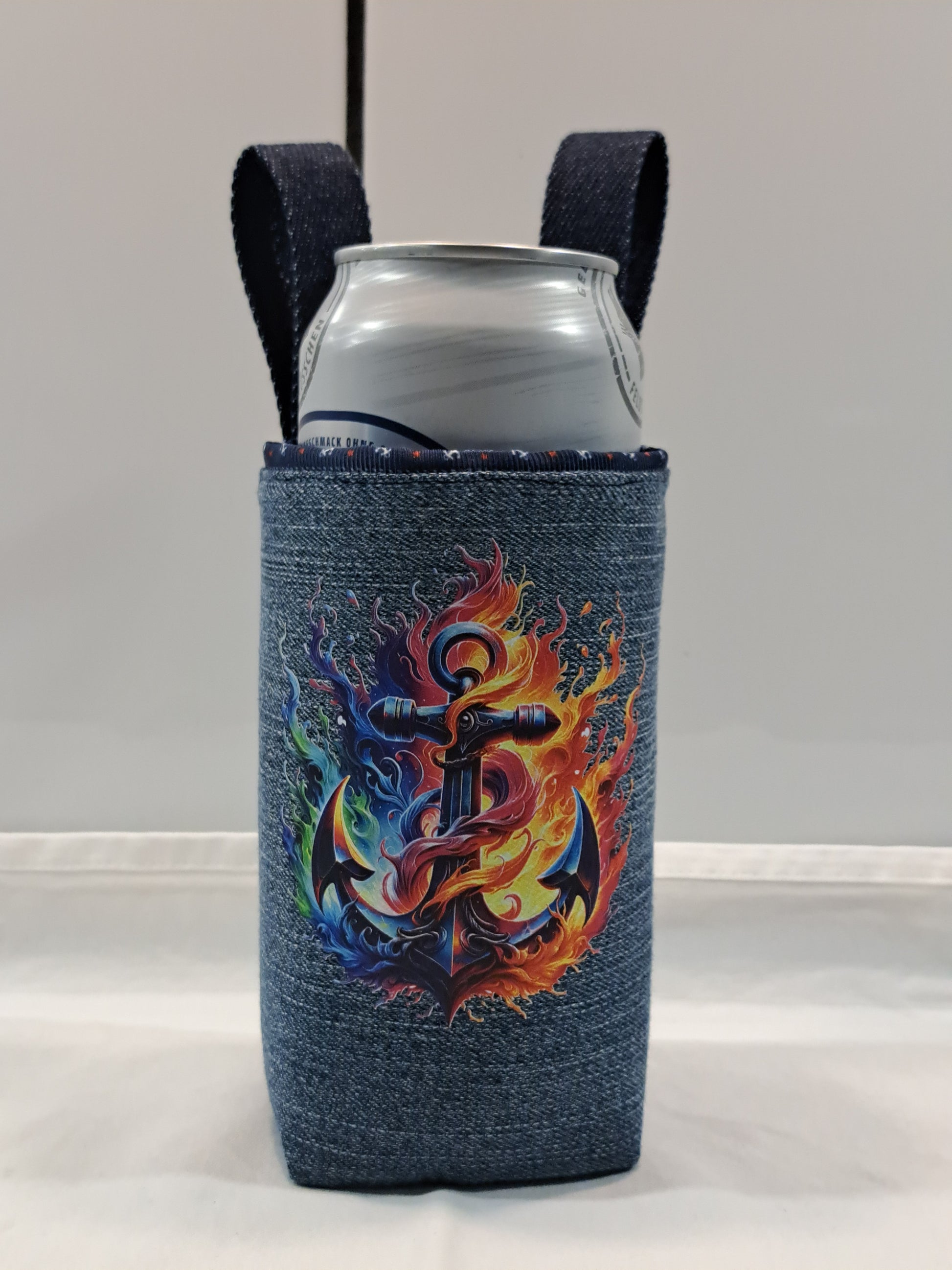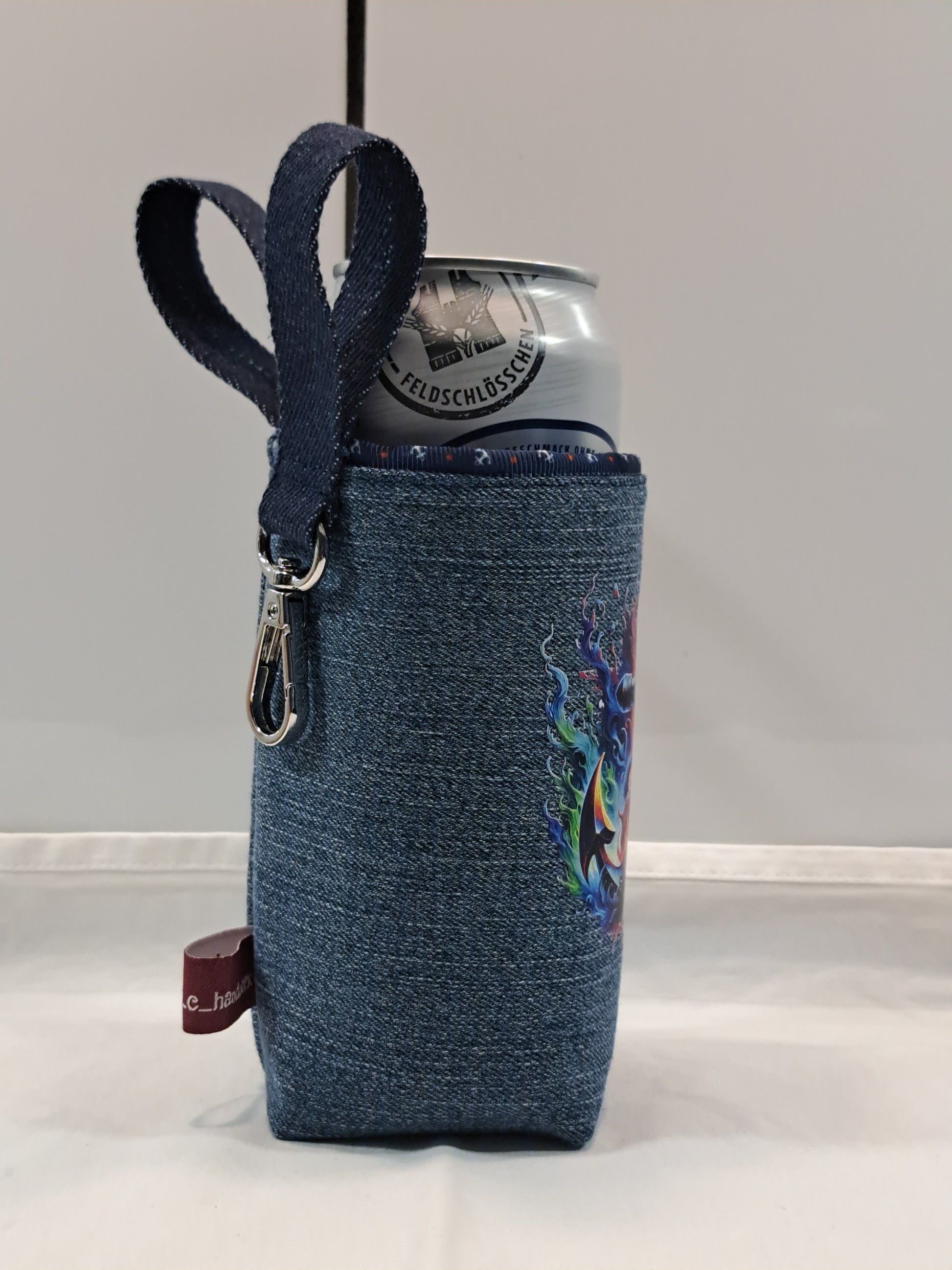 S: oben offen. Mit Schlaufen zum Anhängen an den Gürtel. Geeignet für 5dl Getränkeflaschen/ -Dosen