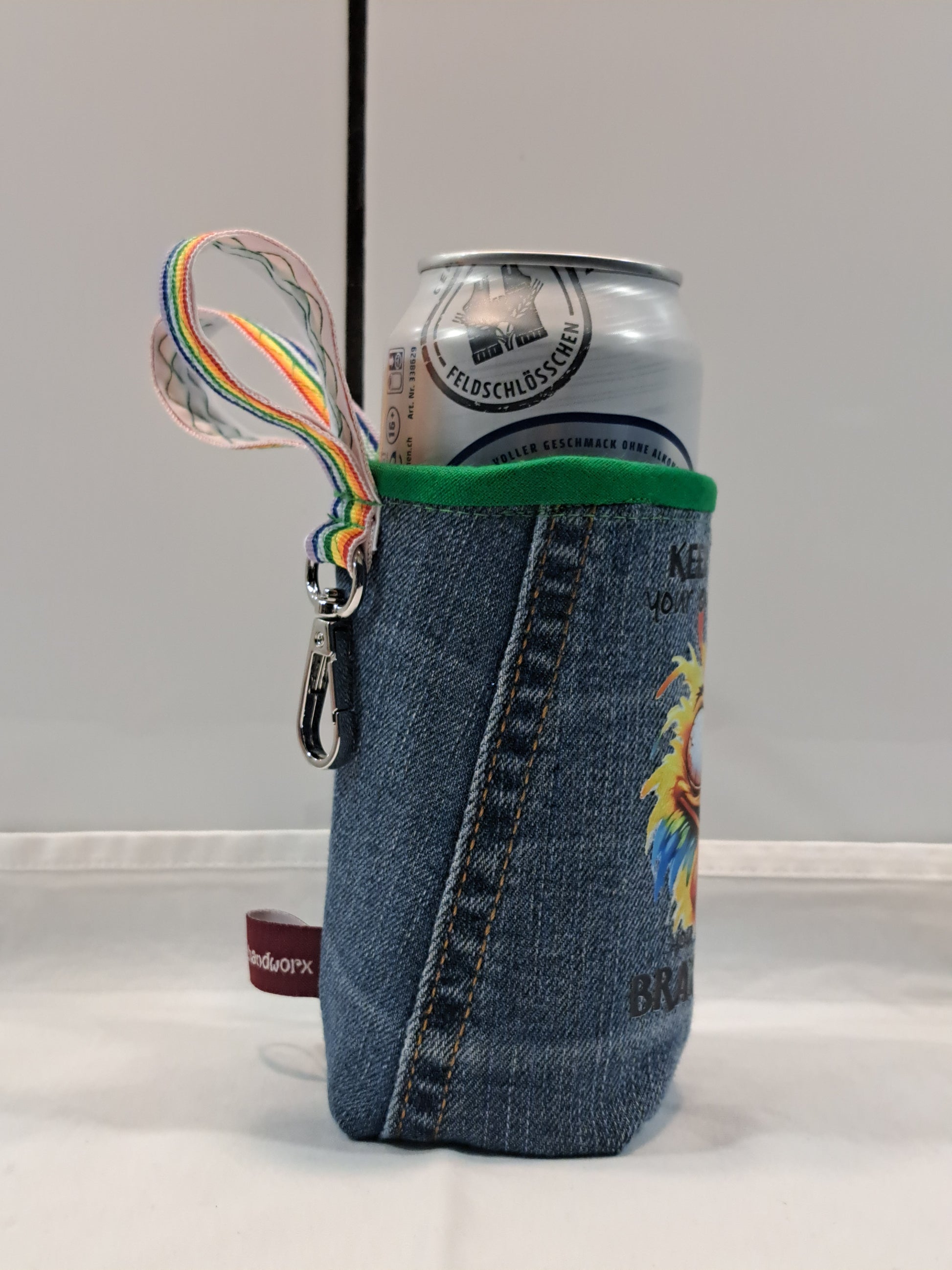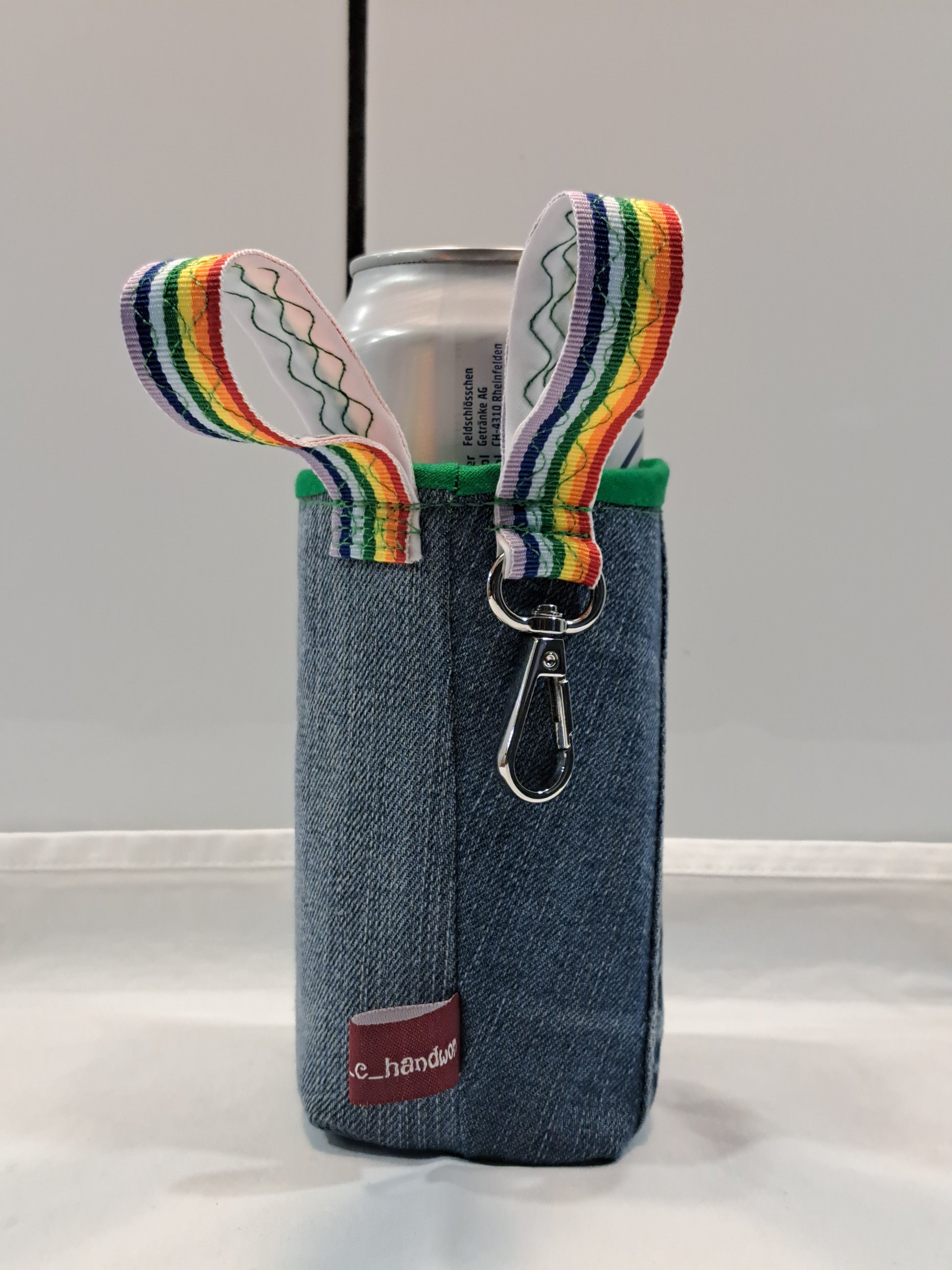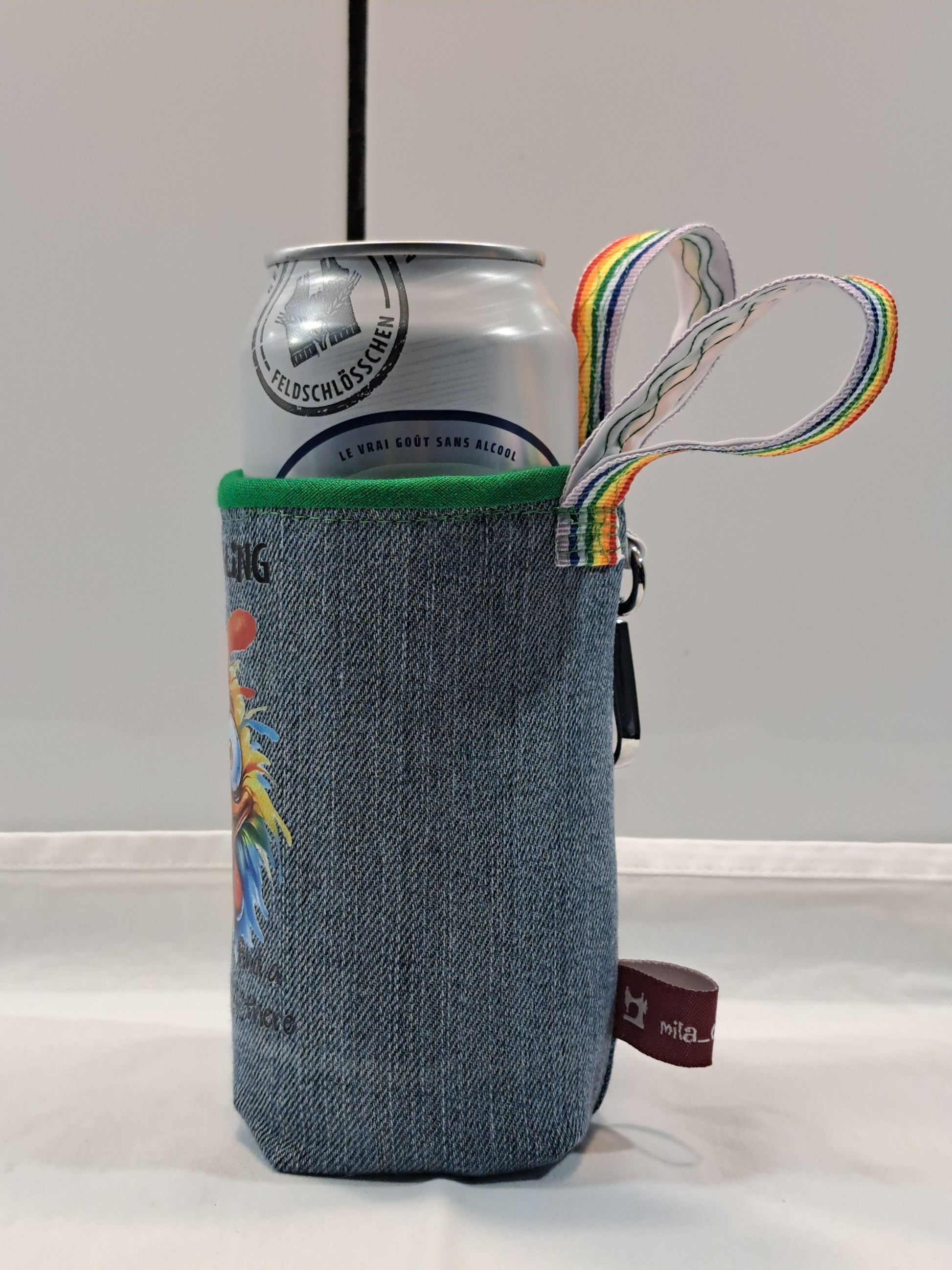 S: oben offen. Mit Schlaufen zum Anhängen an den Gürtel. Geeignet für 5dl Getränkeflaschen/ -Dosen