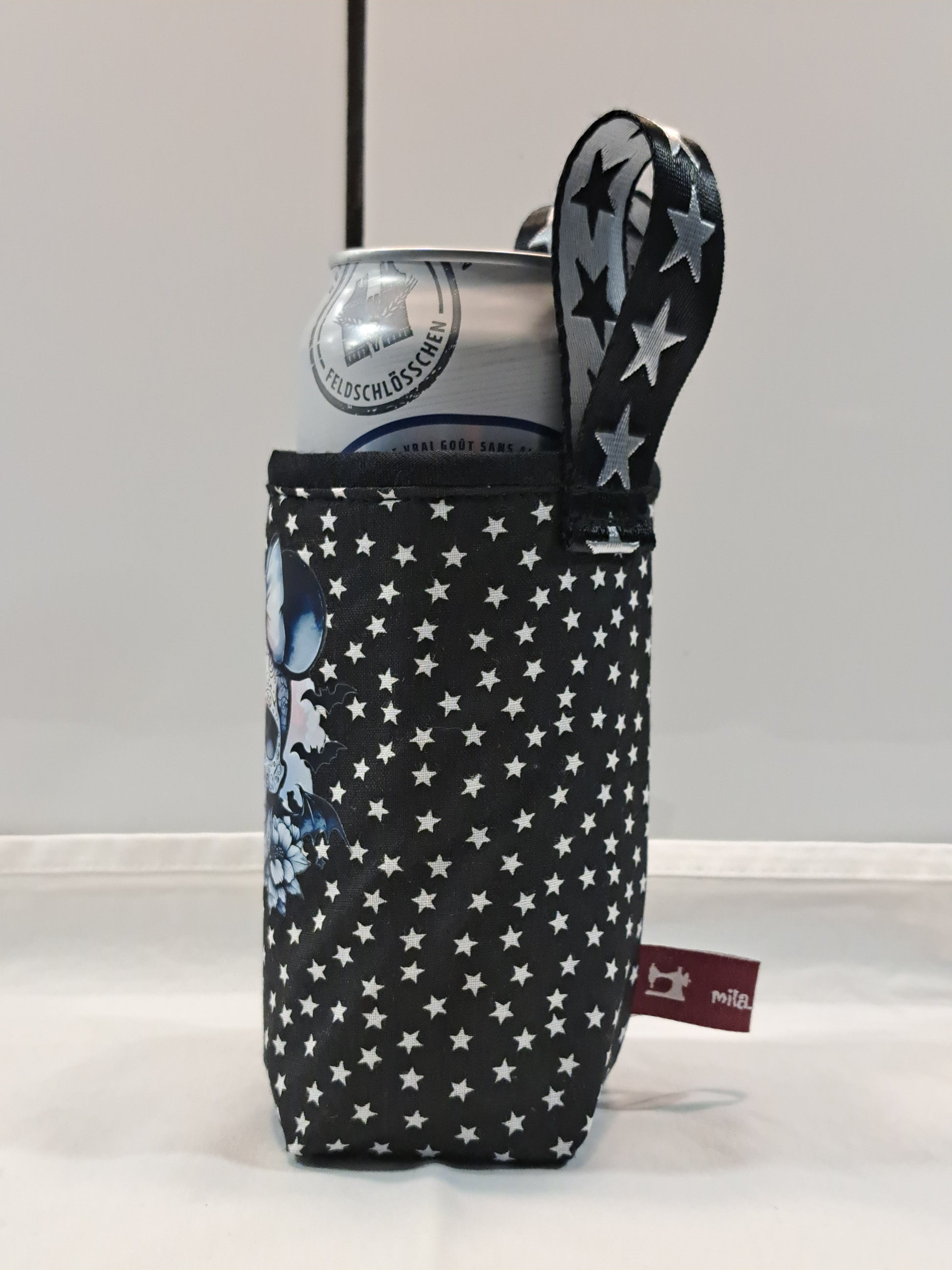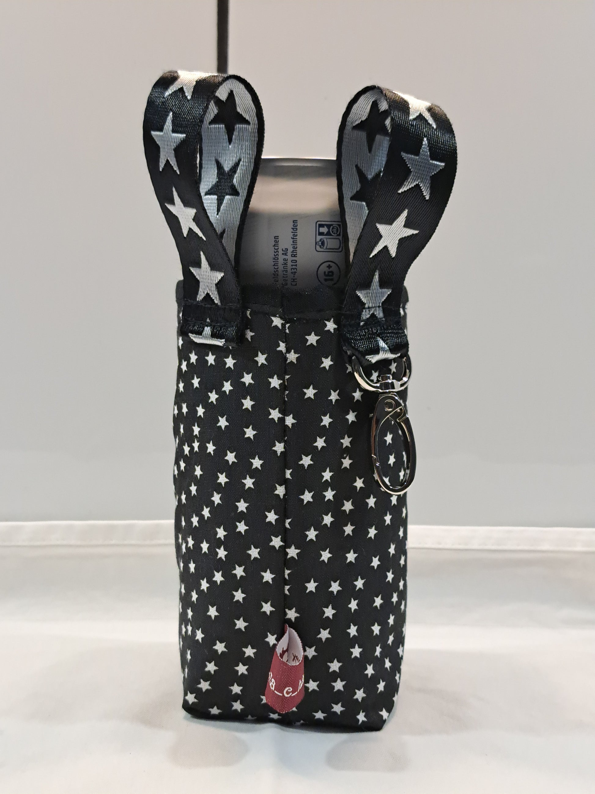 S: oben offen. Mit Schlaufen zum Anhängen an den Gürtel. Geeignet für 5dl Getränkeflaschen/ -Dosen