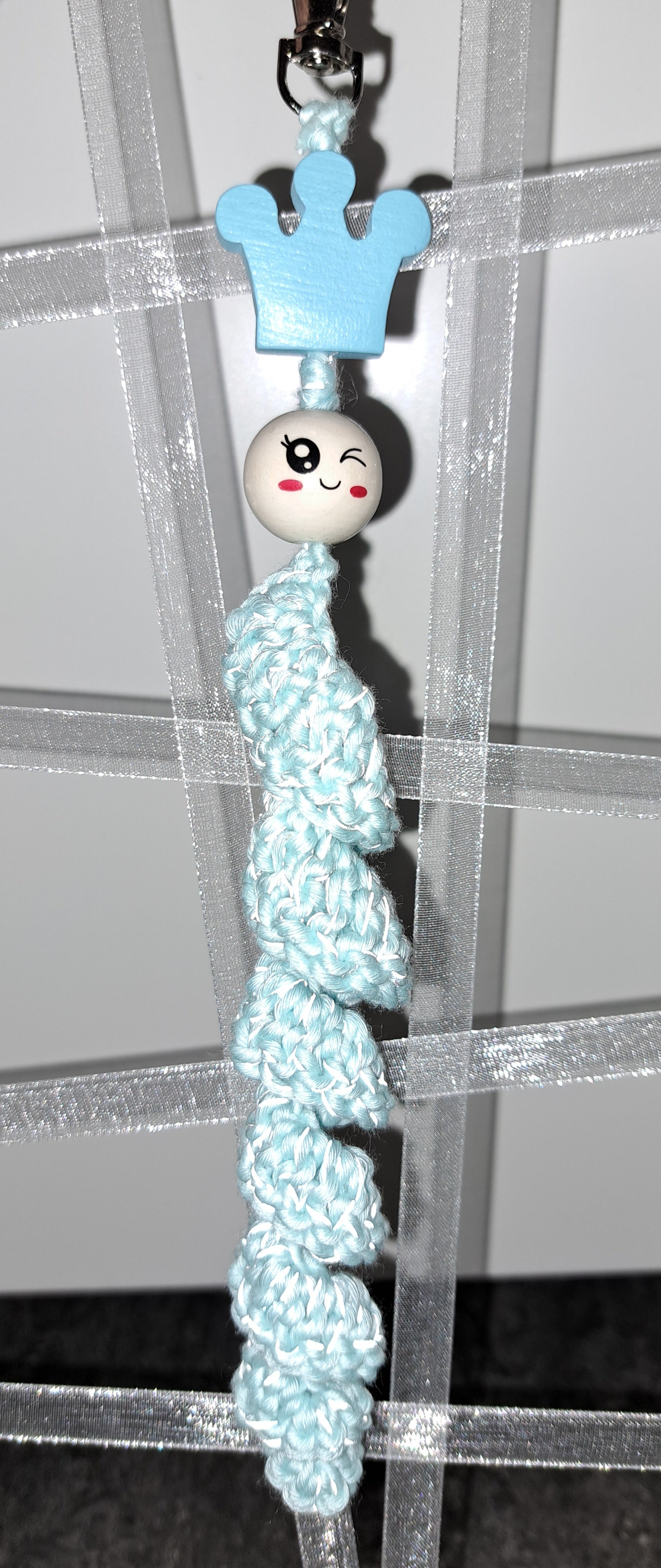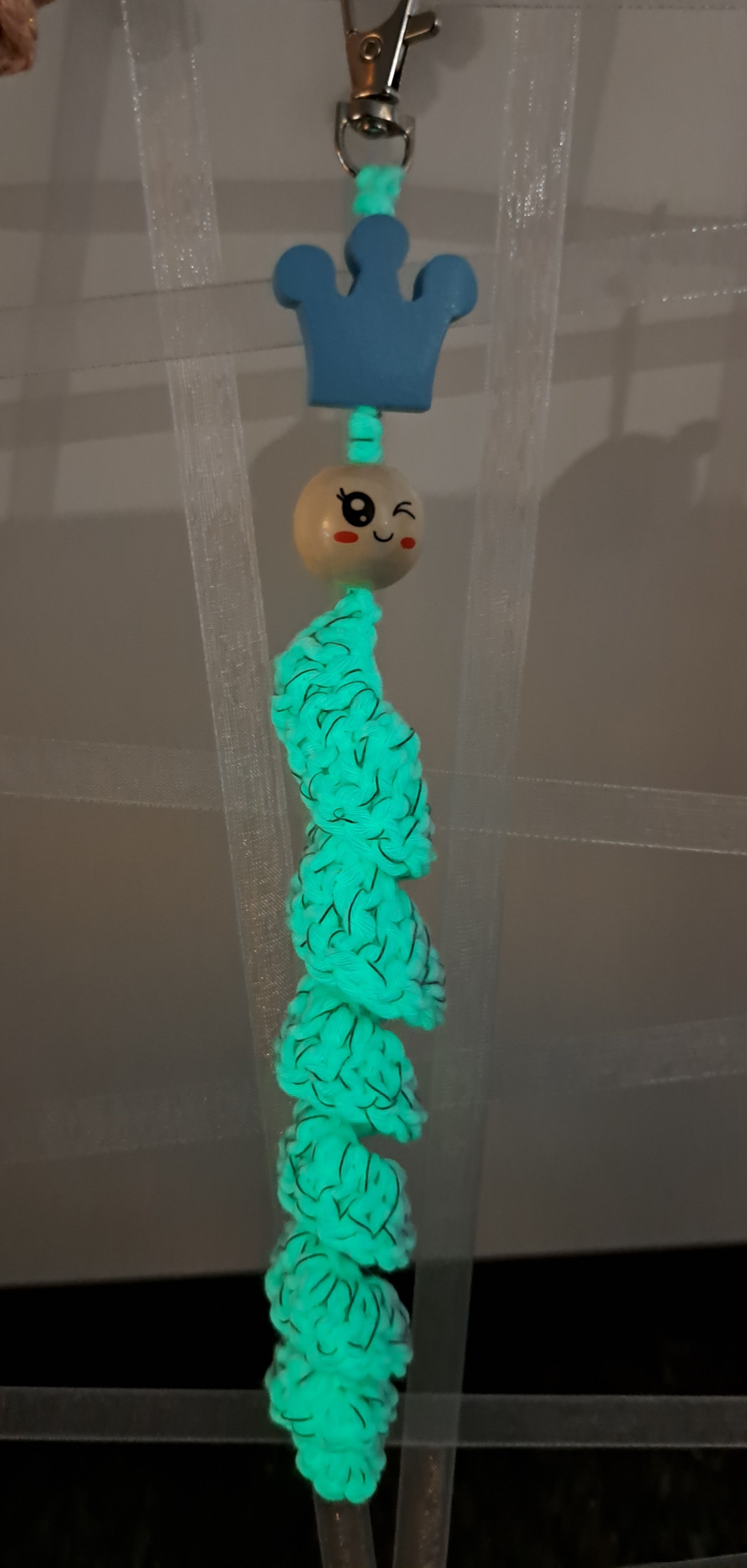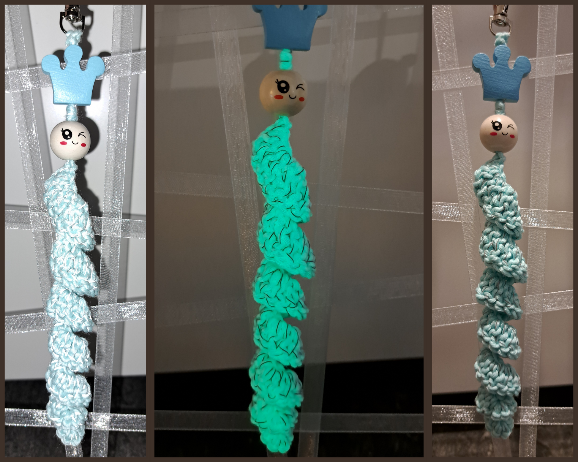 Sorgenwürmchen gehäkelt, fluoreszierendes Garn, mit eingearbeitetem reflektierenden Faden