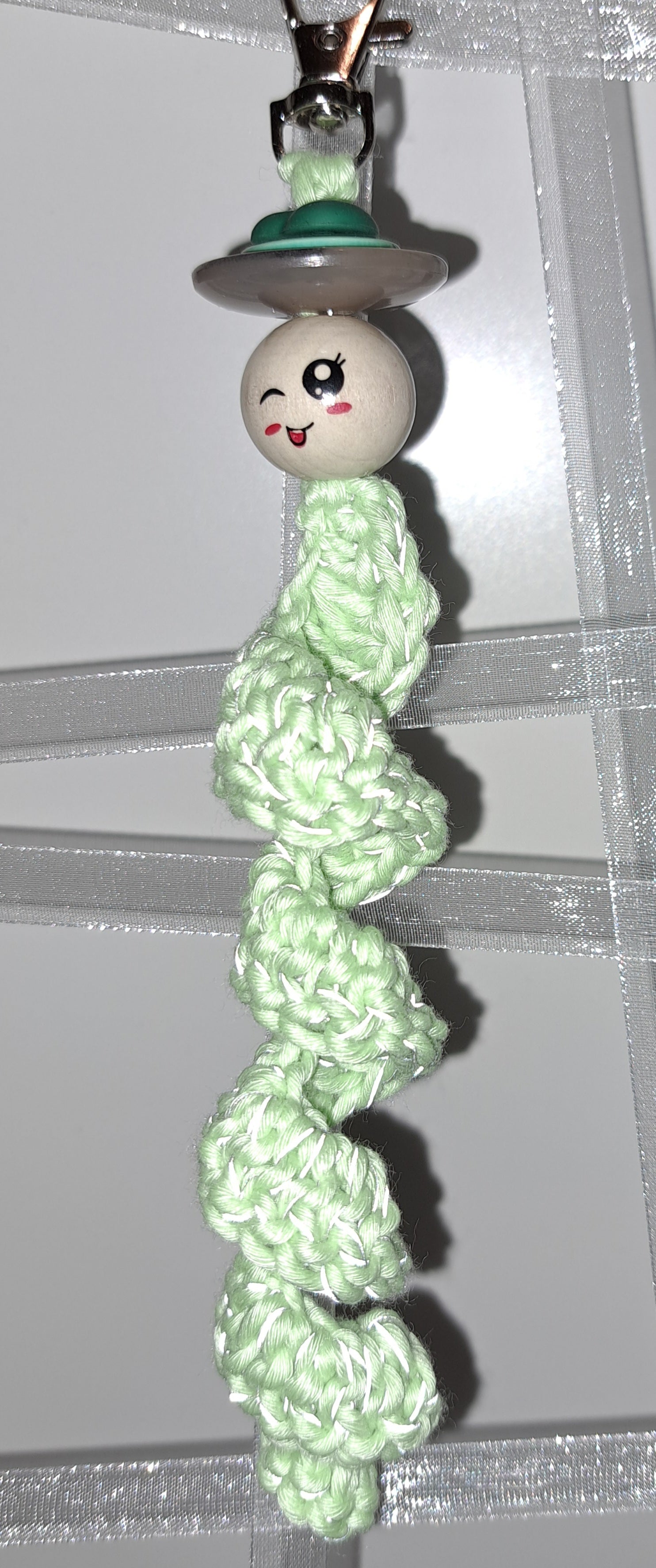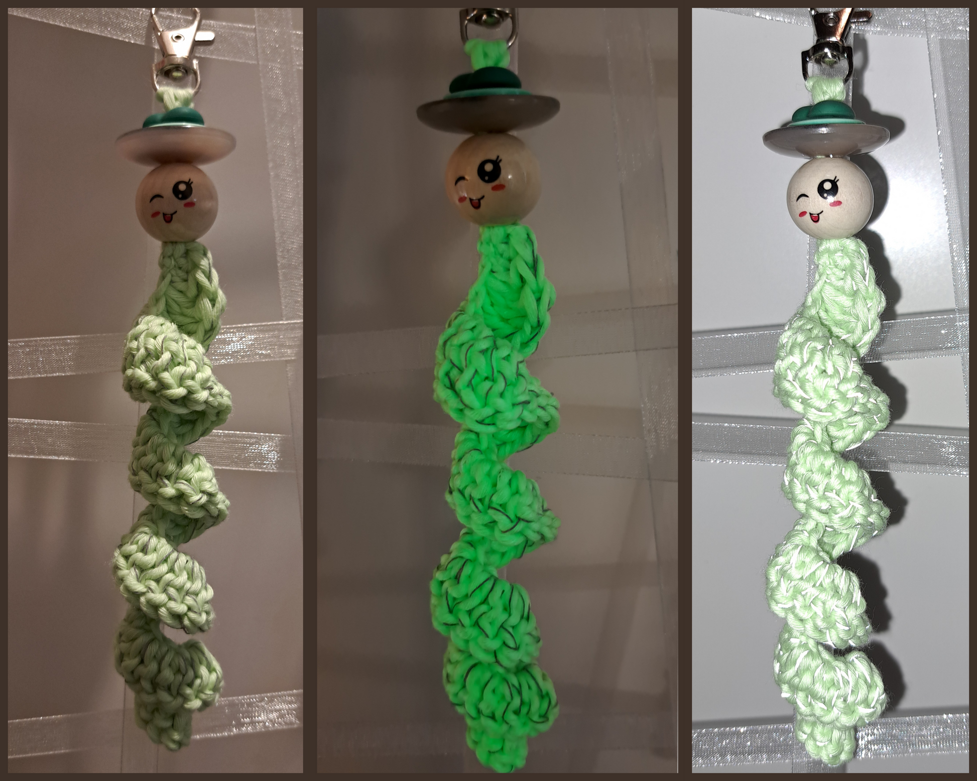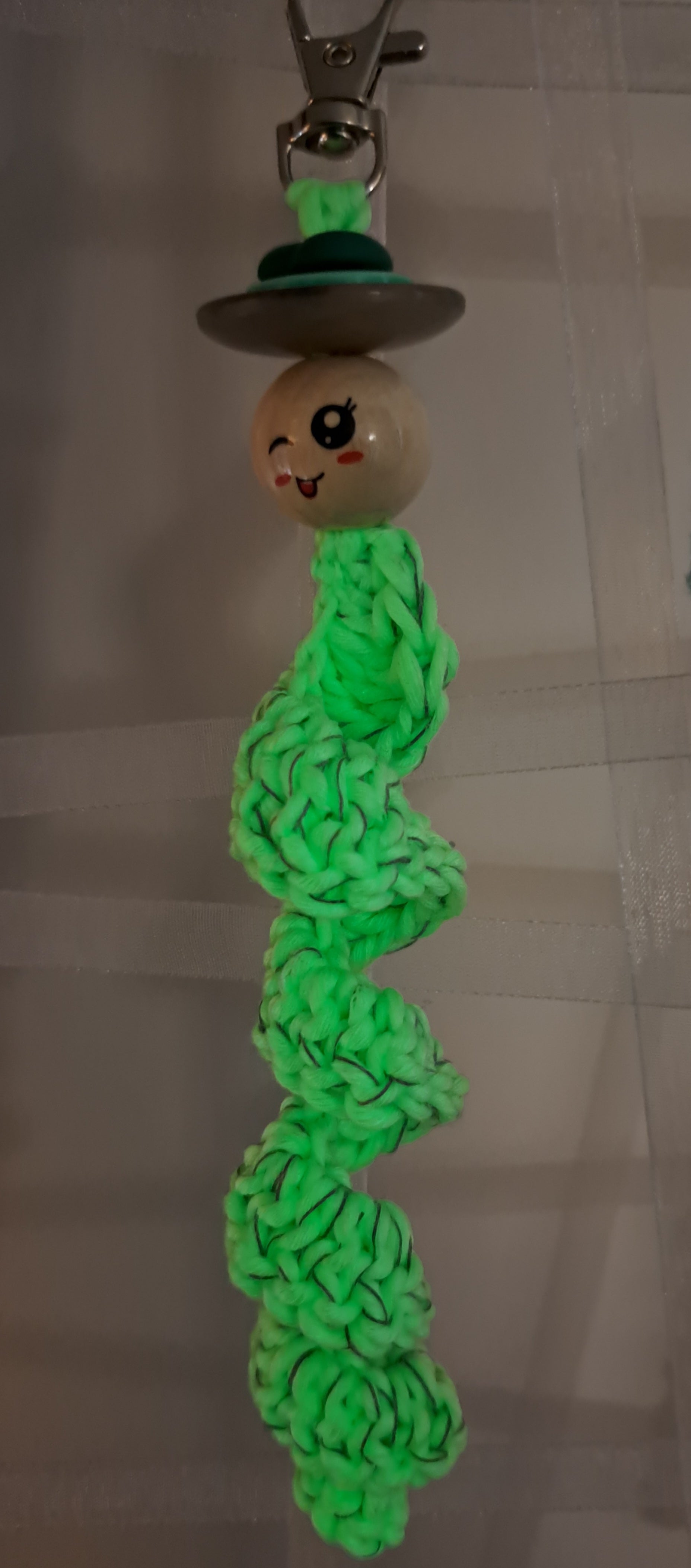 Sorgenwürmchen gehäkelt, fluoreszierendes Garn, mit eingearbeitetem reflektierenden Faden