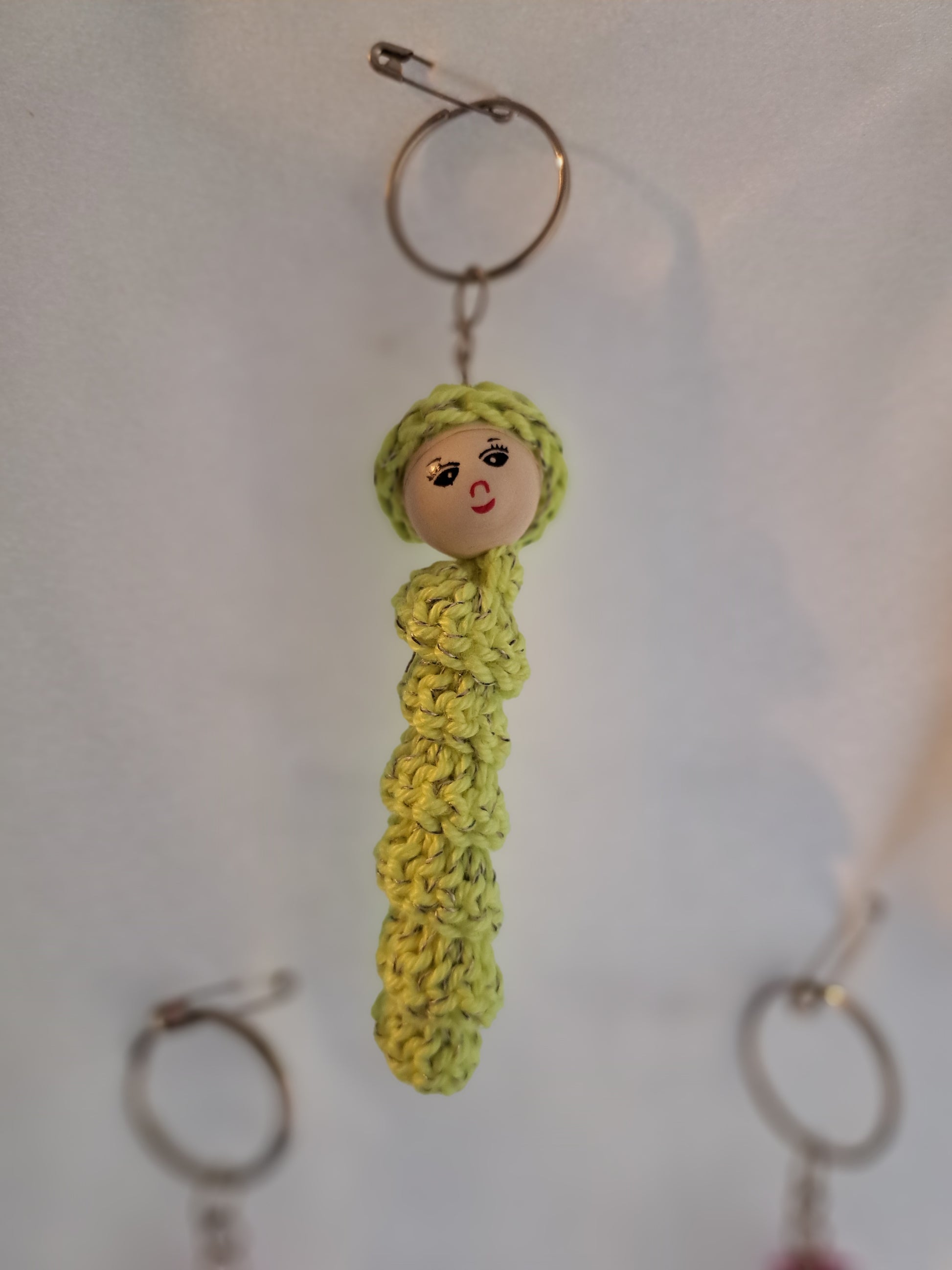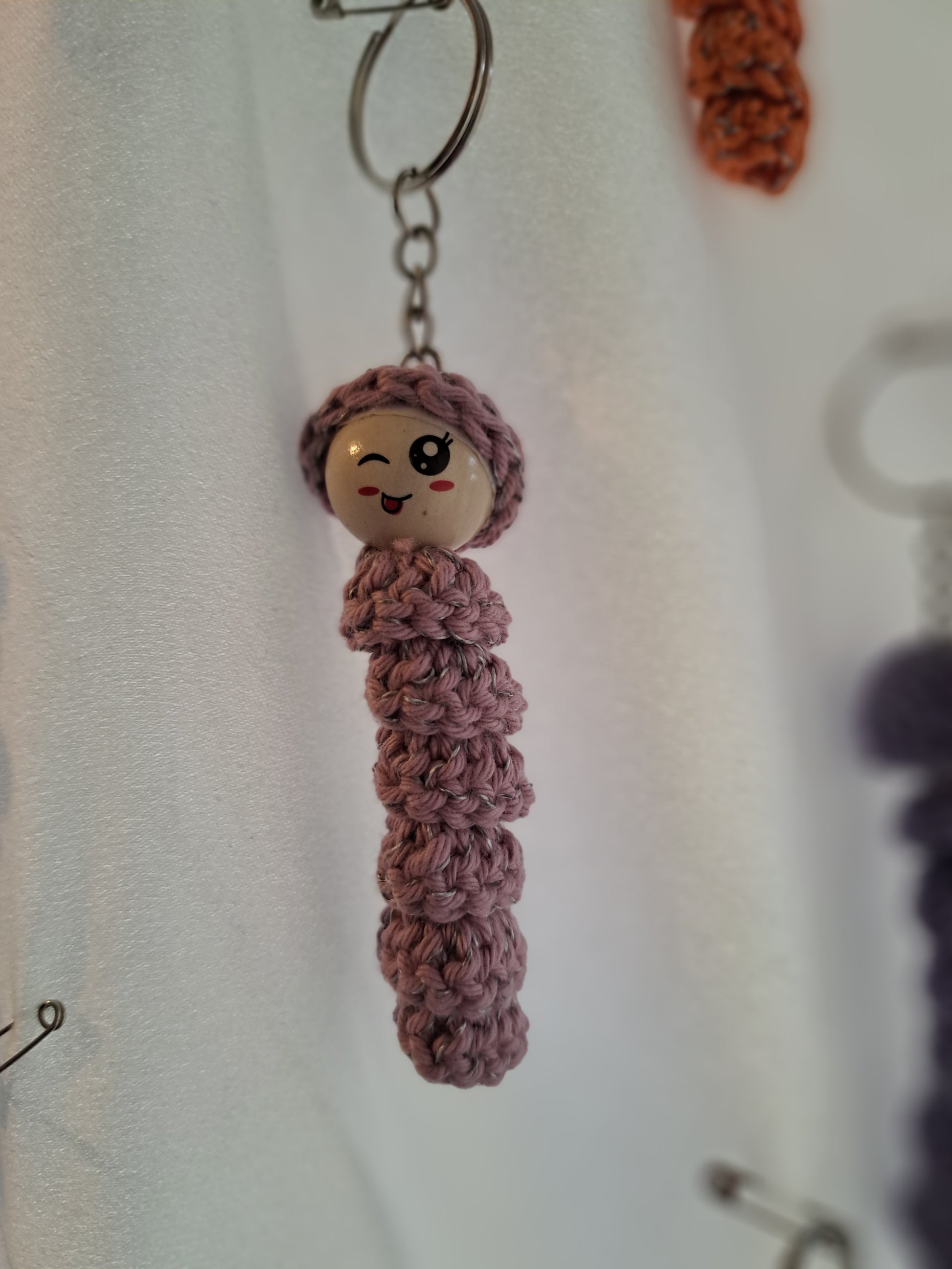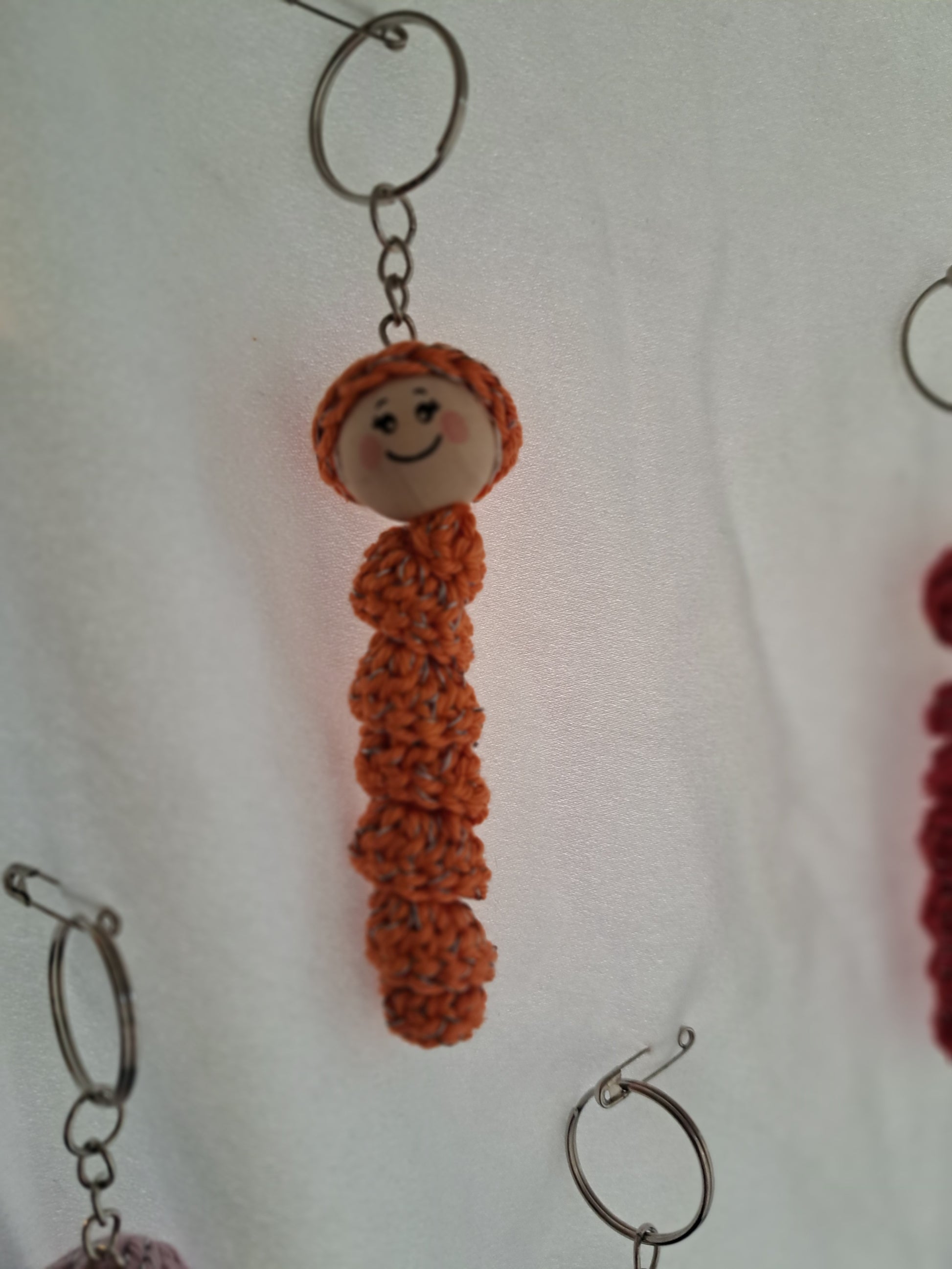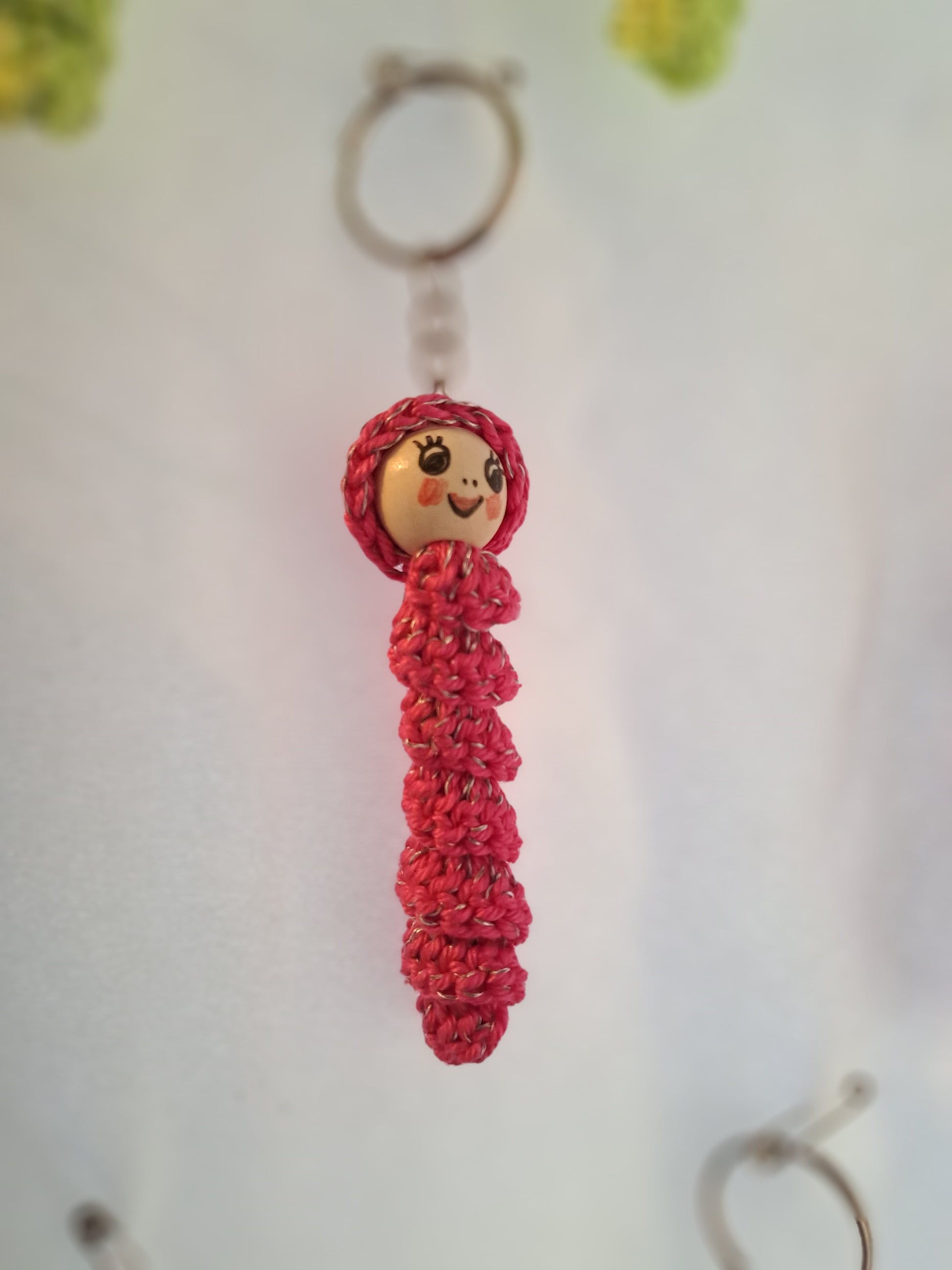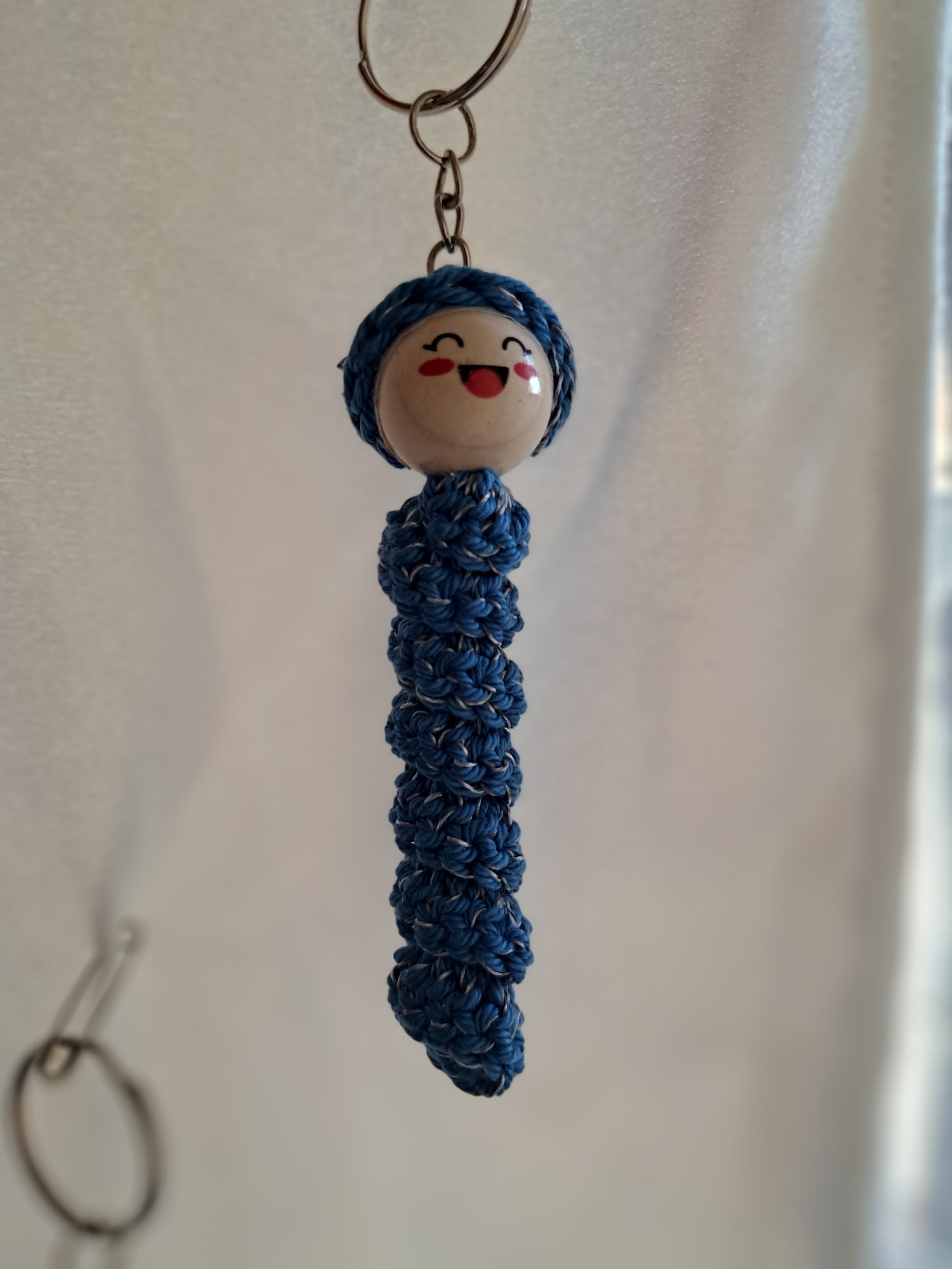 Sorgenwürmchen gehäkelt mit eingearbeitetem reflektierendem Faden. Schlüsselanhänger. Ideal für an die Jacke oder den Rucksack. Jedes Würmchen ein Unikat (Farbe und Gesicht)