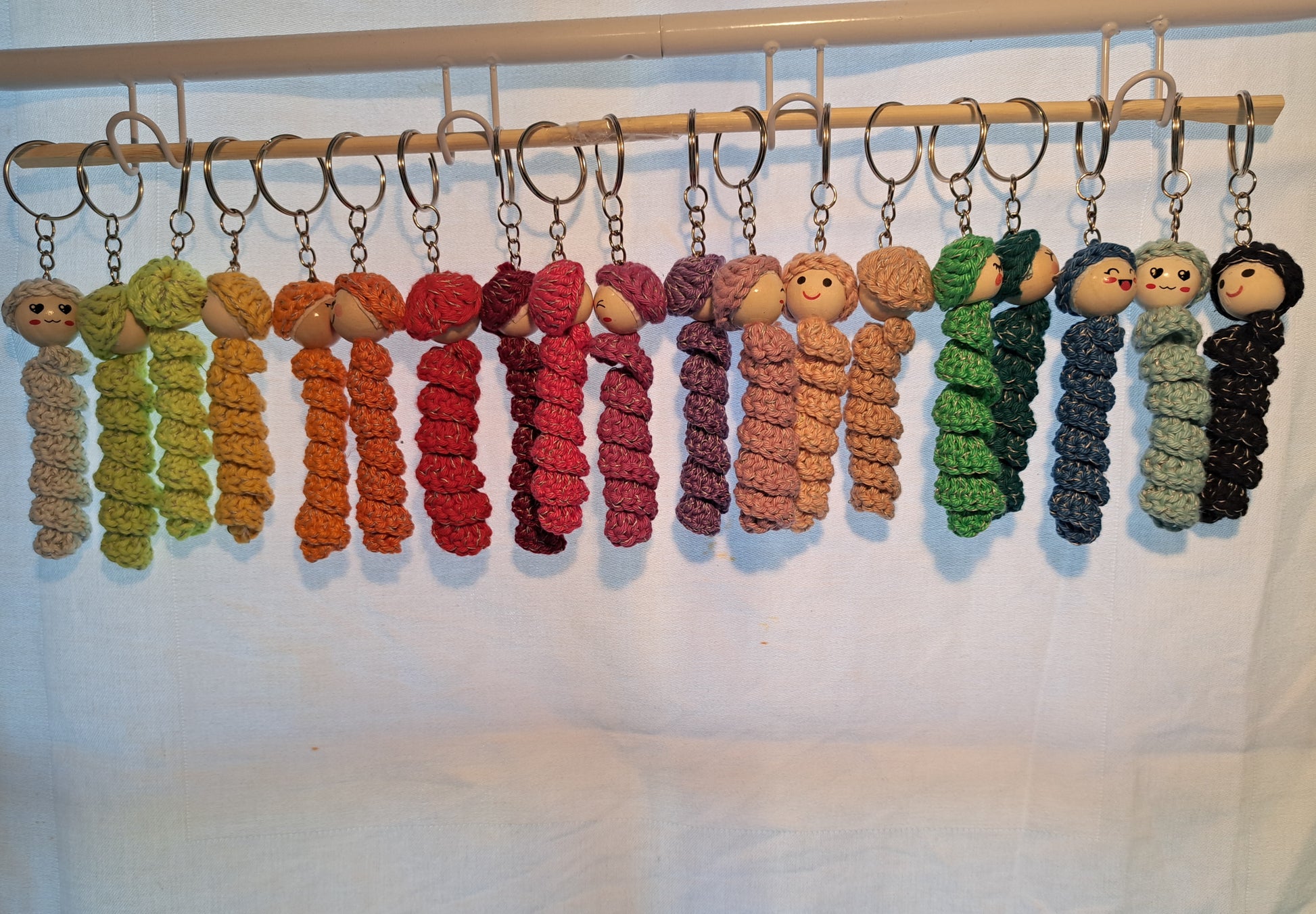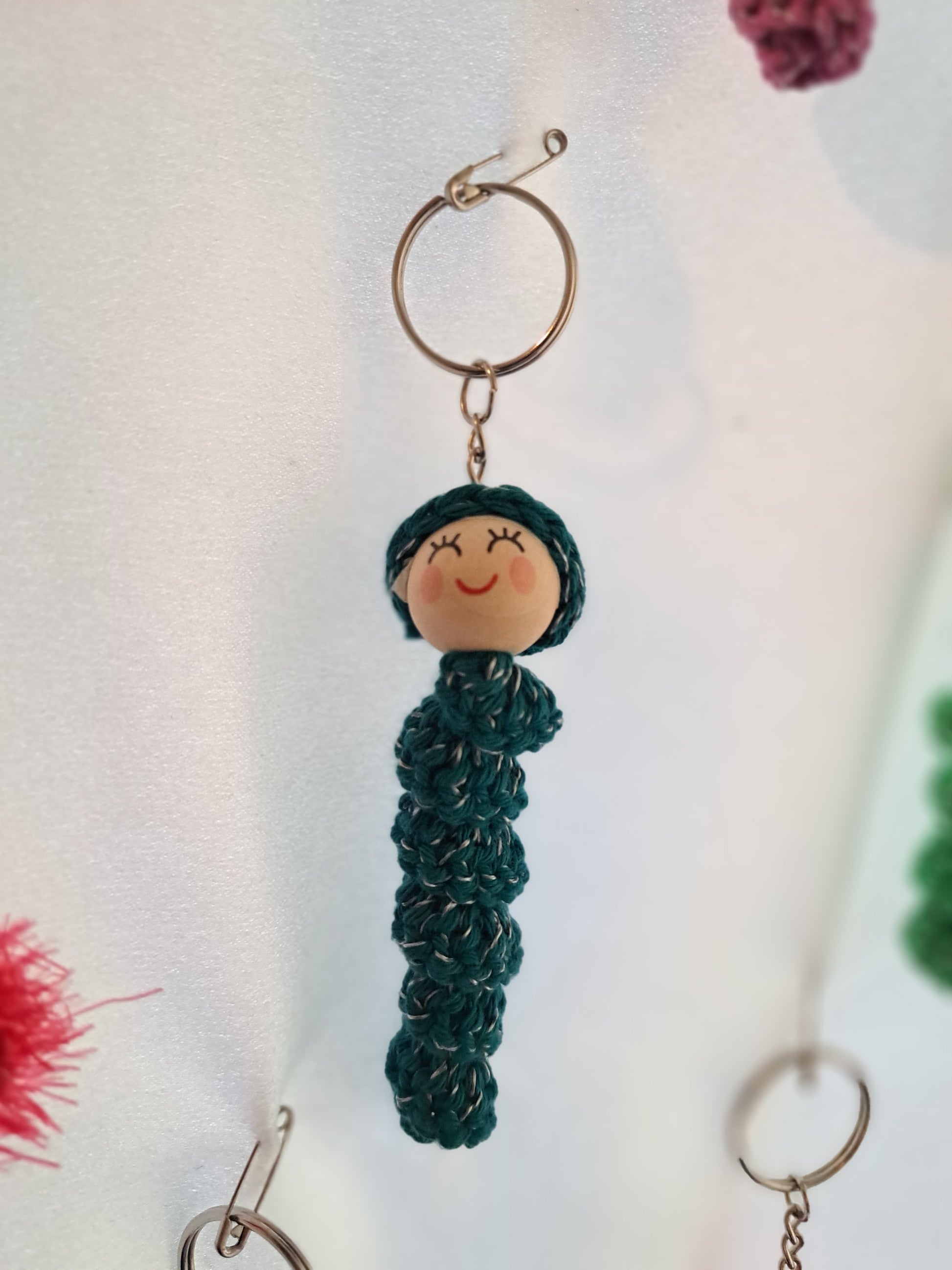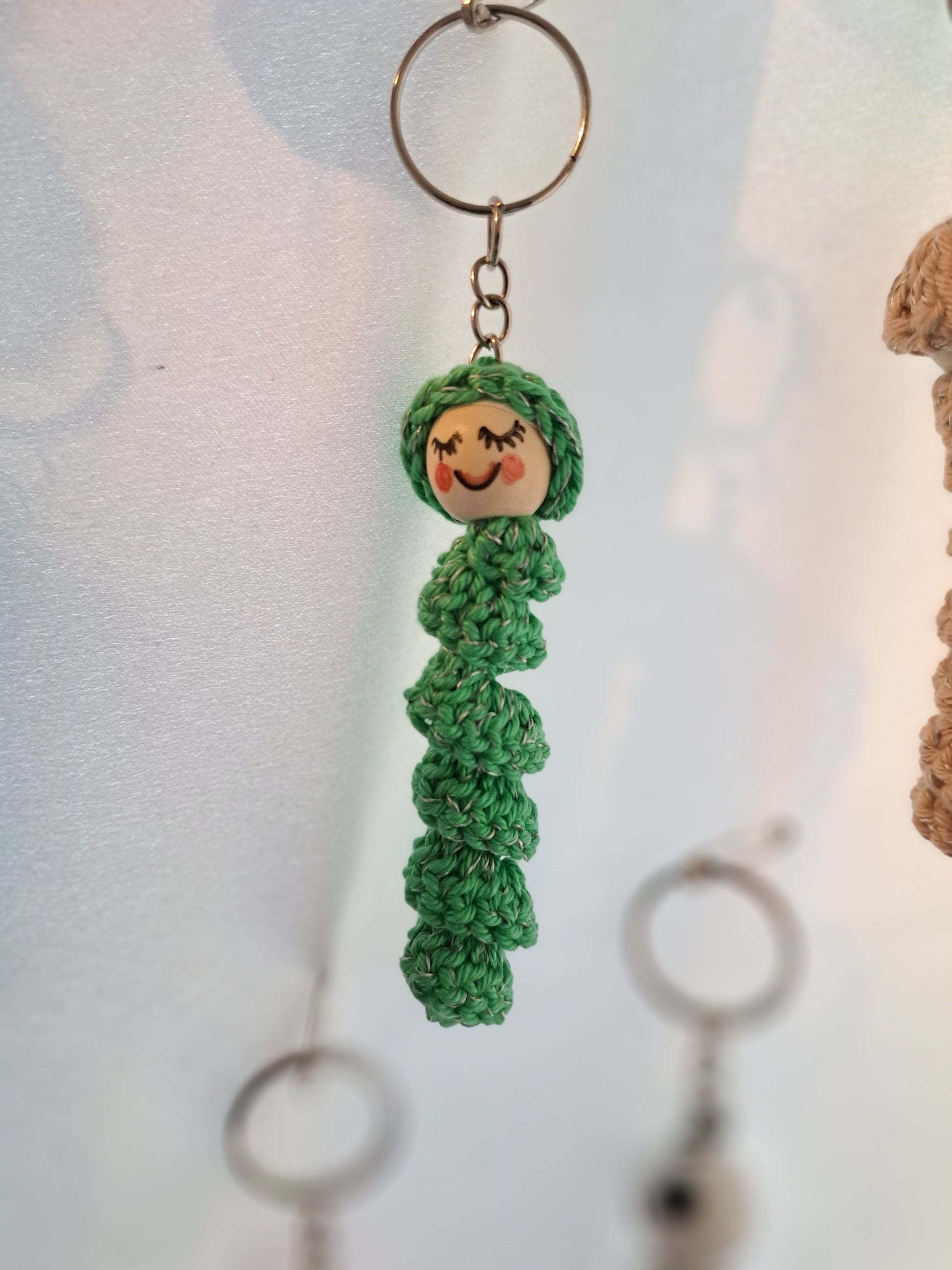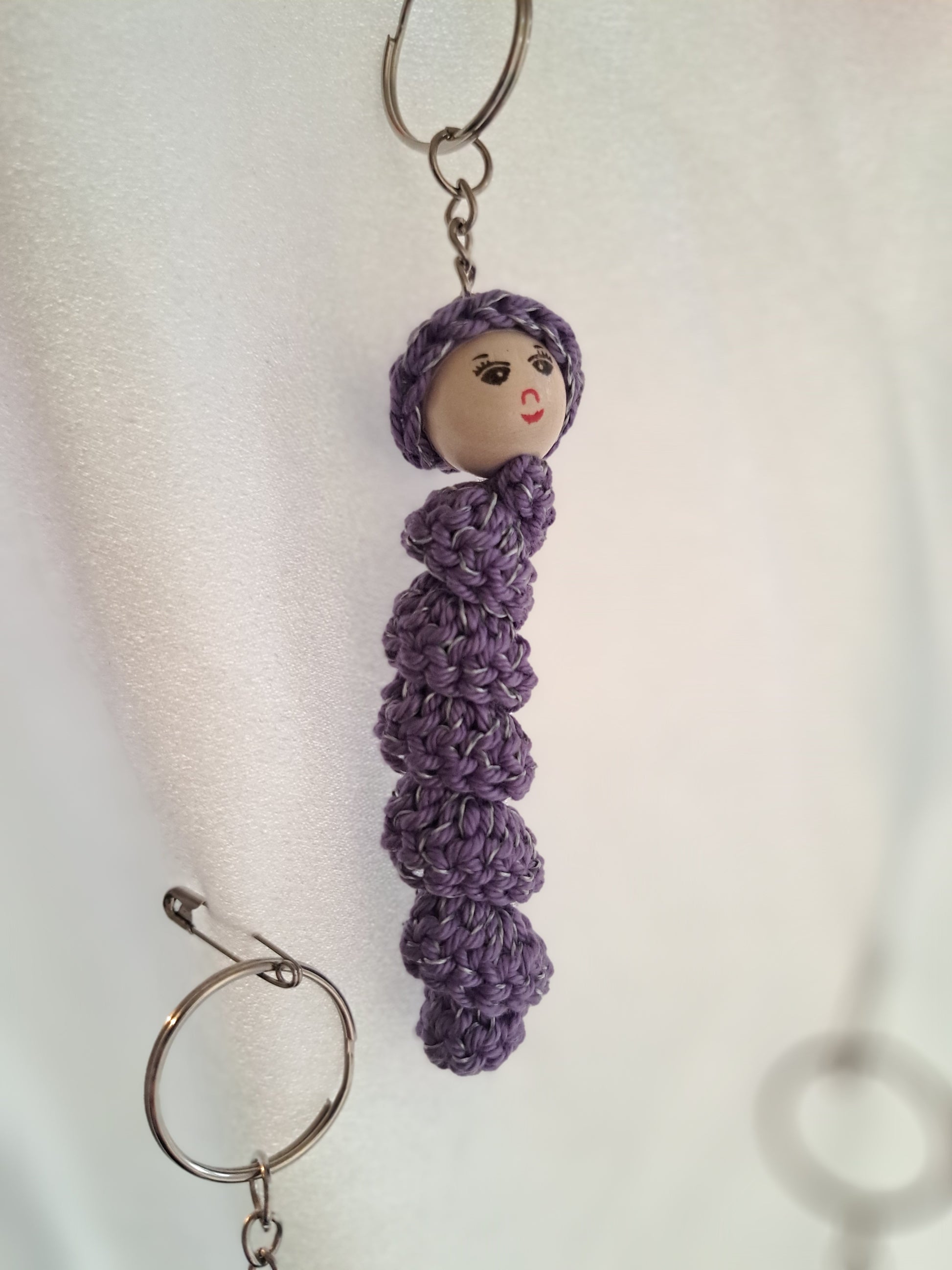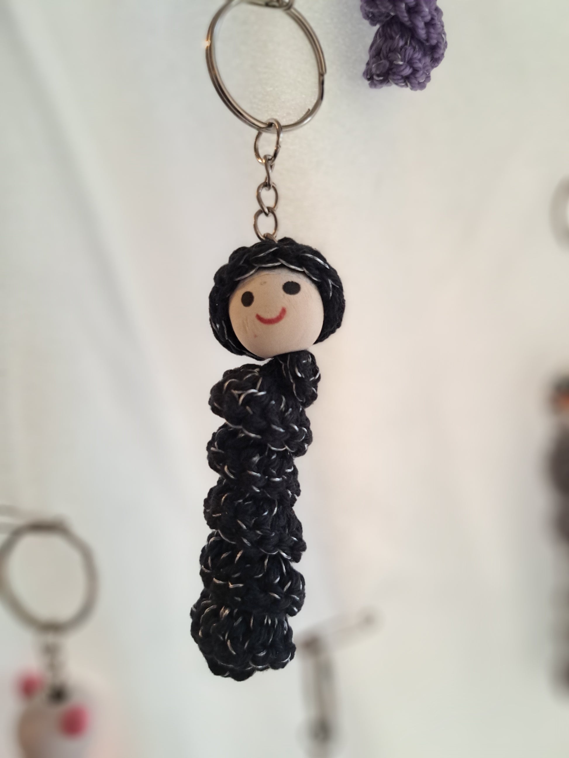 Sorgenwürmchen gehäkelt mit eingearbeitetem reflektierendem Faden. Schlüsselanhänger. Ideal für an die Jacke oder den Rucksack. Jedes Würmchen ein Unikat (Farbe und Gesicht)